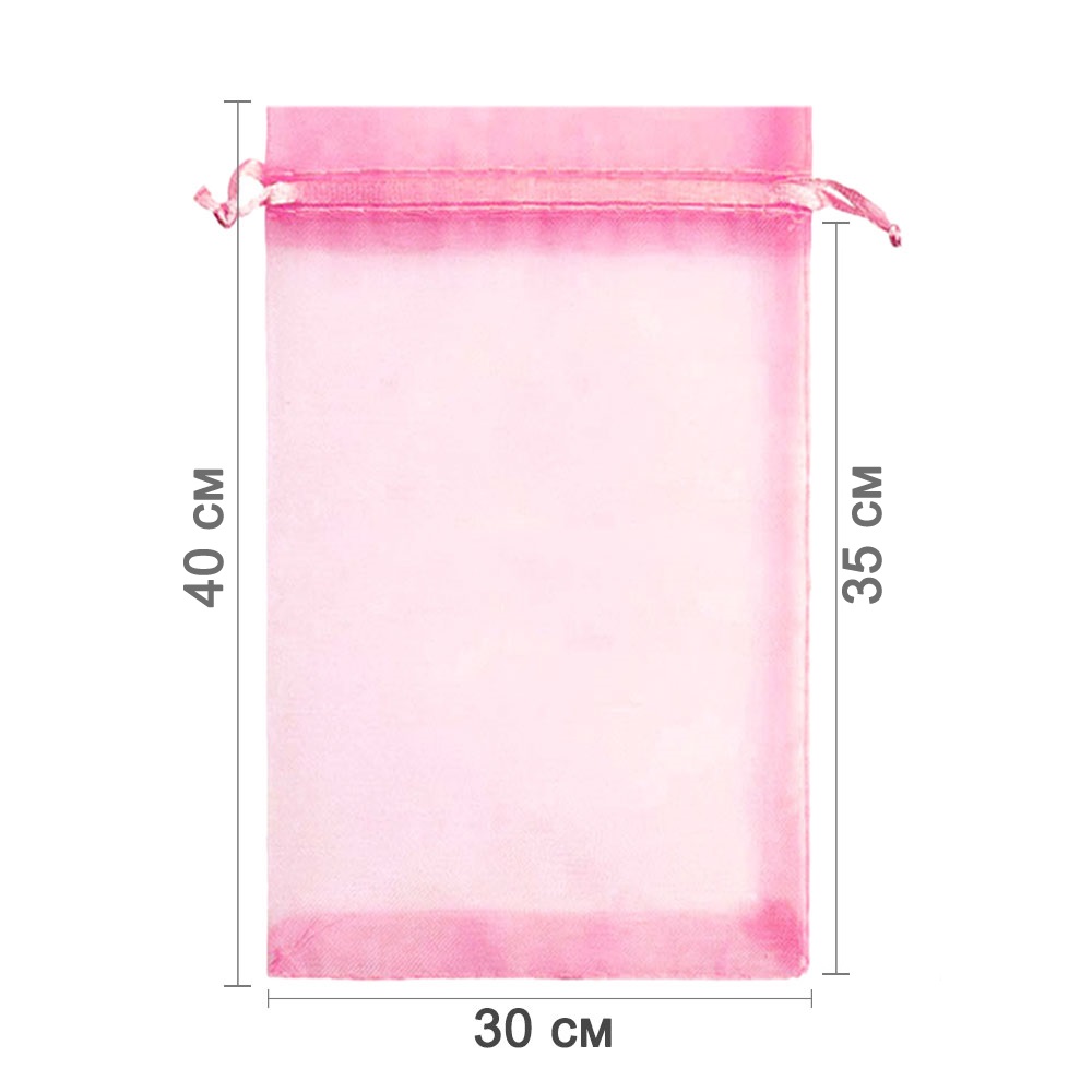 Мешочек из органзы 30 х 40 см — практичный аксессуар для упаковки крупных подарков и хранения предметов. Полупрозрачная ткань подчёркивает содержимое и придаёт праздничный вид.