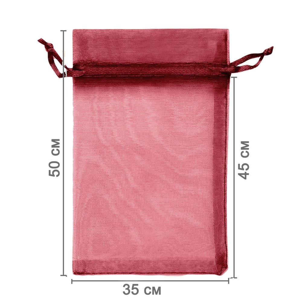 Мешочек из органзы 35 х 50 см — стильная и удобная упаковка для крупных подарков и хранения больших предметов. Лёгкая ткань подчёркивает содержимое и создаёт праздничный вид.