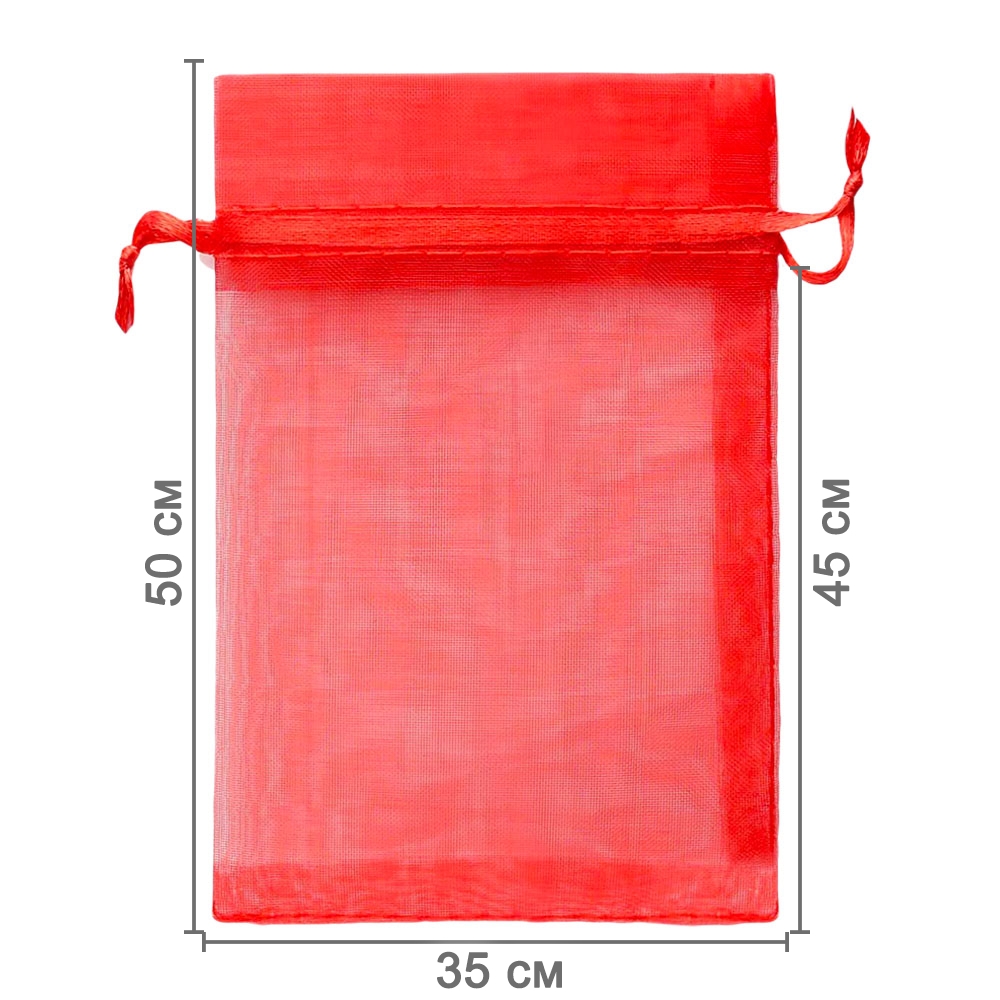 Мешочек из органзы 35 х 50 см — стильная и удобная упаковка для крупных подарков и хранения больших предметов. Лёгкая ткань подчёркивает содержимое и создаёт праздничный вид.