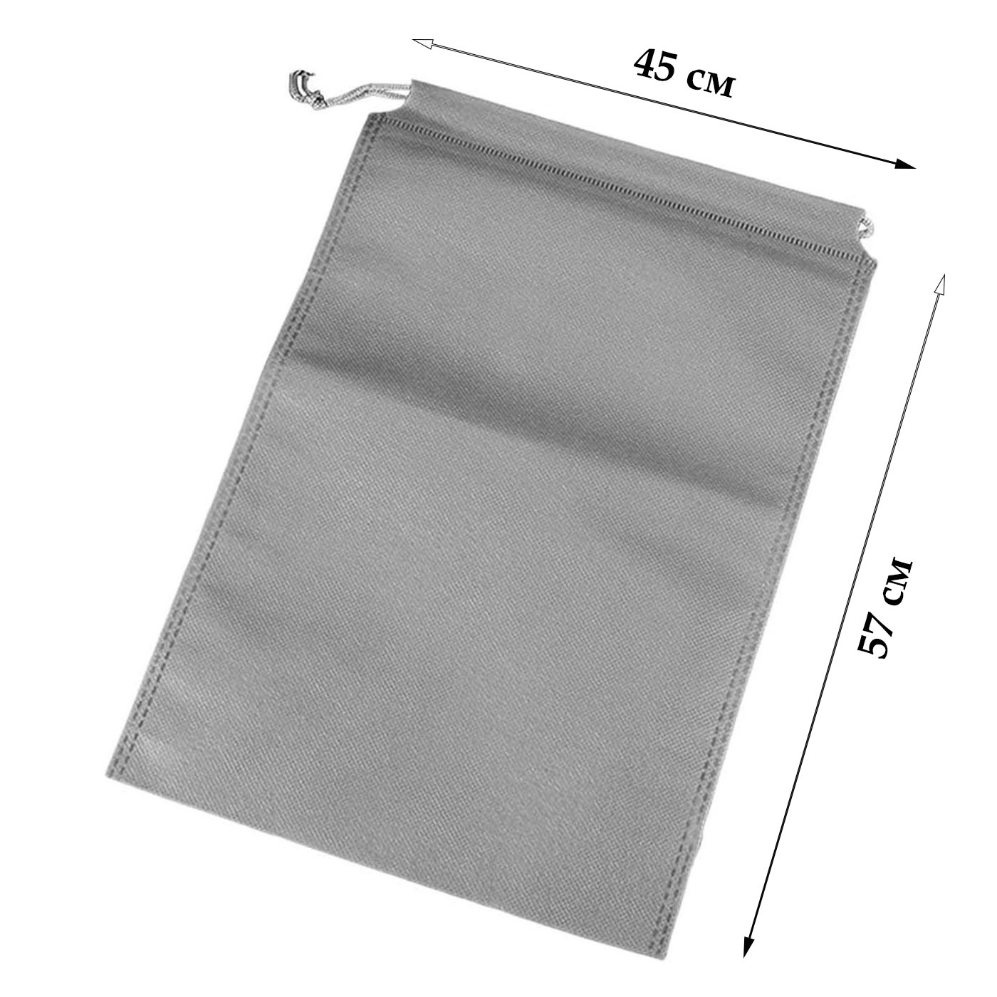 Мешочек из спанбонда, размеры 57х45 см, со шнурками, подходит для многоразового использования.