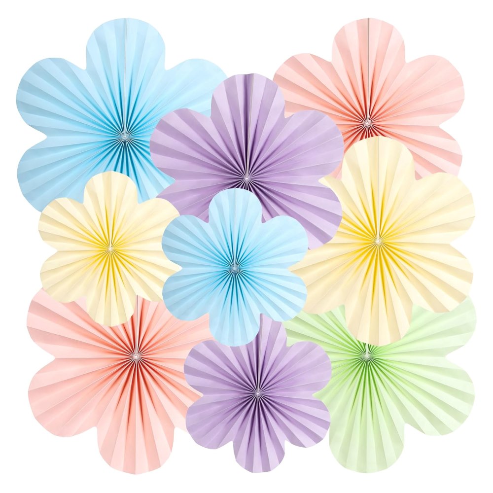Набор фантов в форме цветов включает в себя пять оттенков: голубой, персиковый, нежно-желтый, нежно-зеленый, сиреневый.
