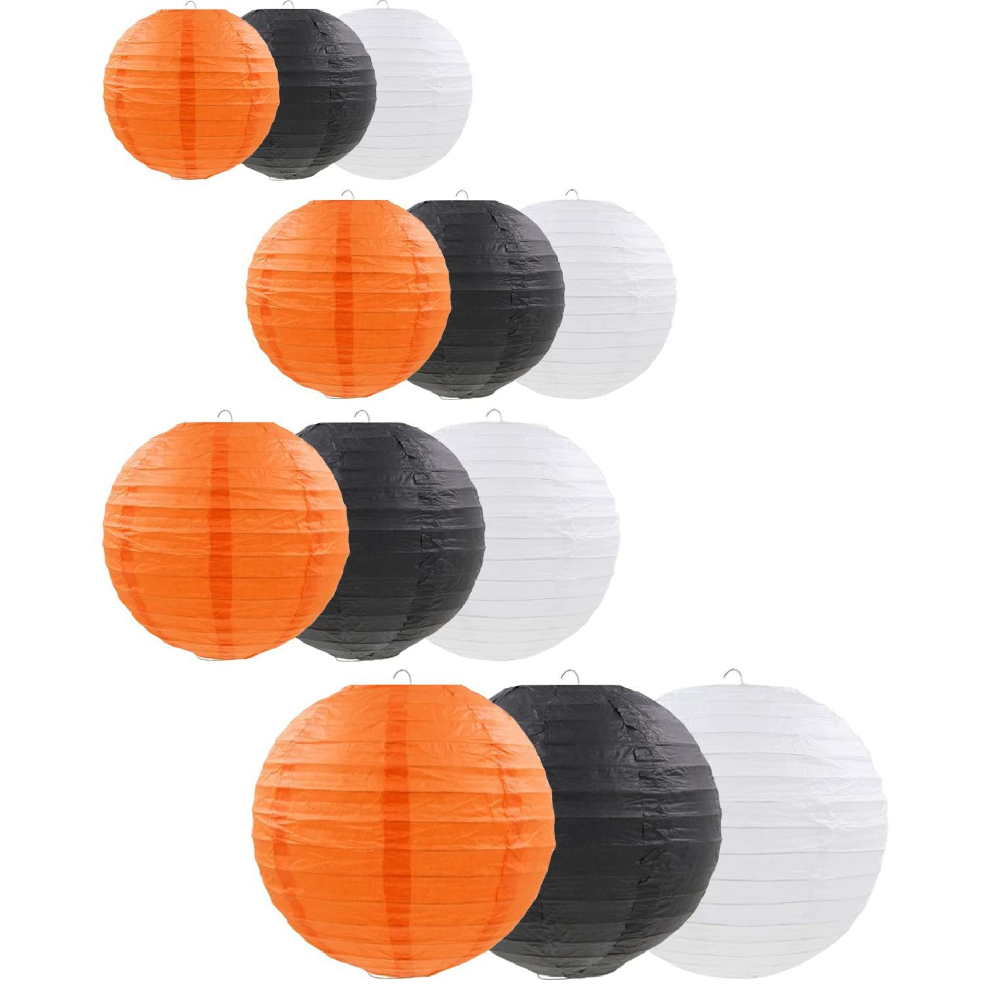 Набор подвесные фонарики 12 шт, белый+черный+оранжевый