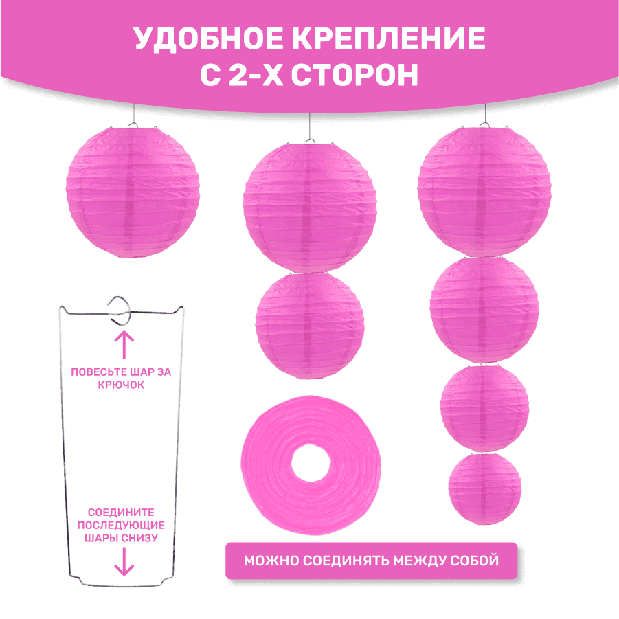 Комплект подвесные фонарики 12 шт малиновый