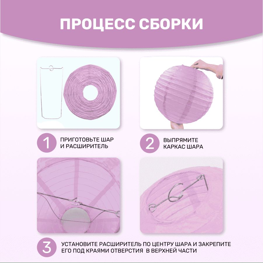 Комплект подвесные фонарики 30 см х 8 шт, светло-сиреневый