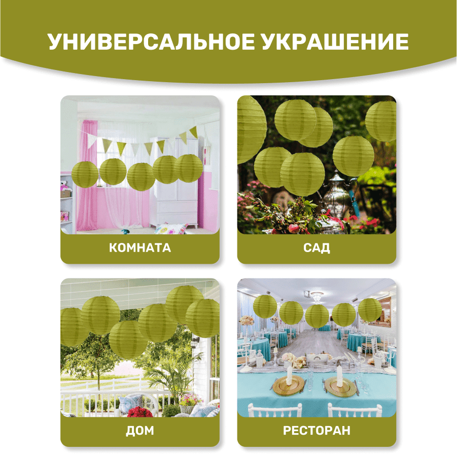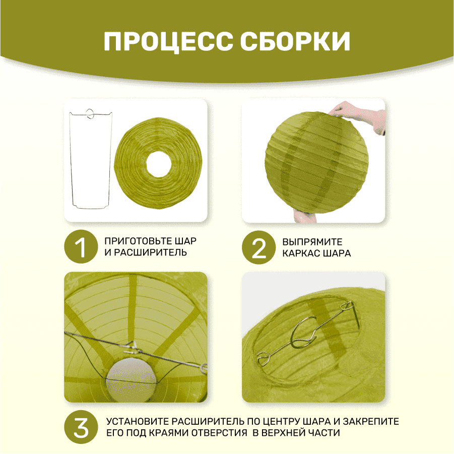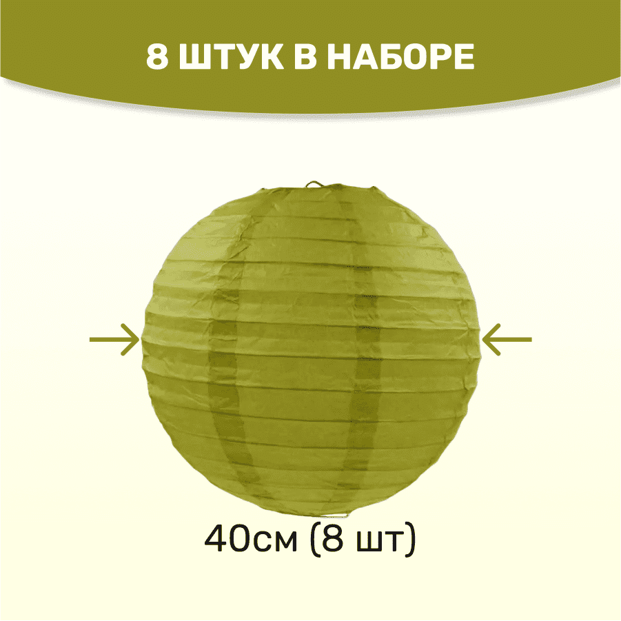 Комплект подвесные фонарики 40 см х 8 шт, фисташковый