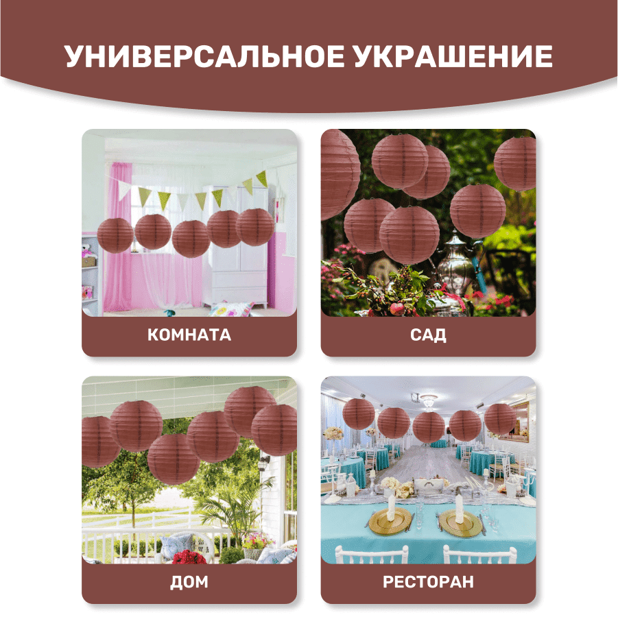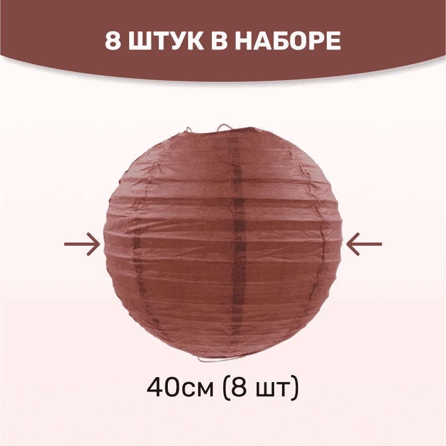 Комплект подвесные фонарики 40 см х 8 шт, коричневый