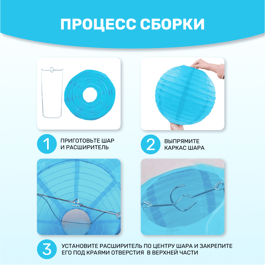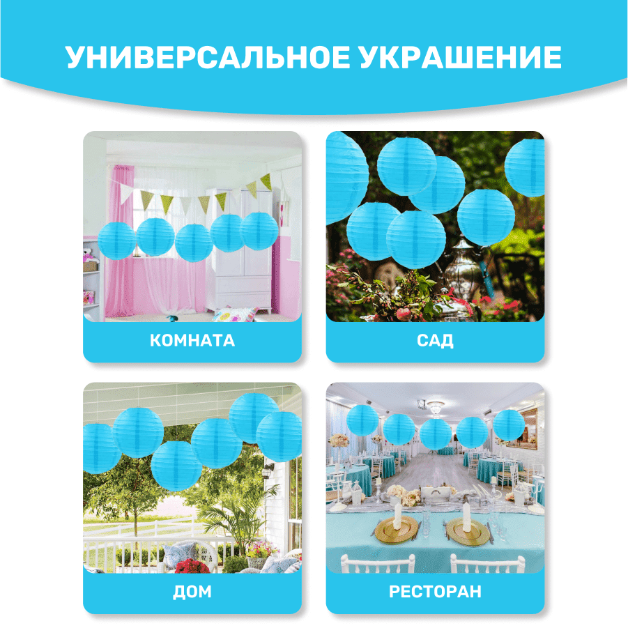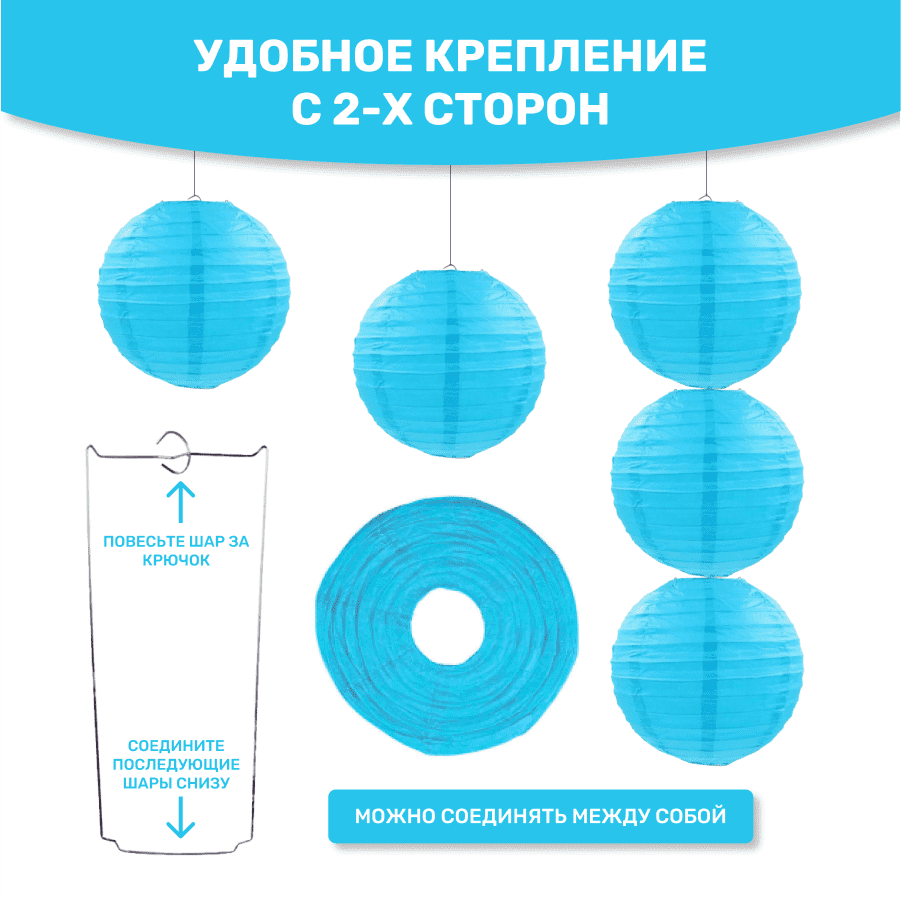 Комплект подвесные фонарики 40 см х 8 шт, светло-синий