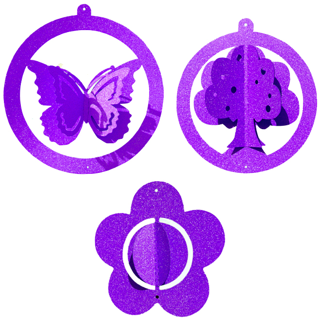 Набор подвесок бабочка+цветок+дерево 3D сиреневый