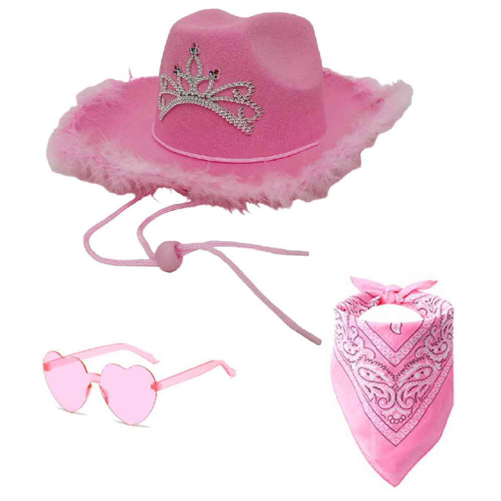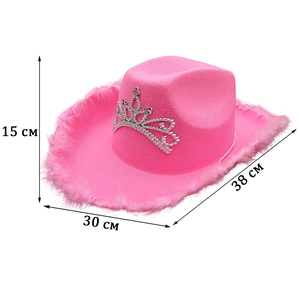 Набор Шляпа ковбойская с перьями, короной и очками, розовый