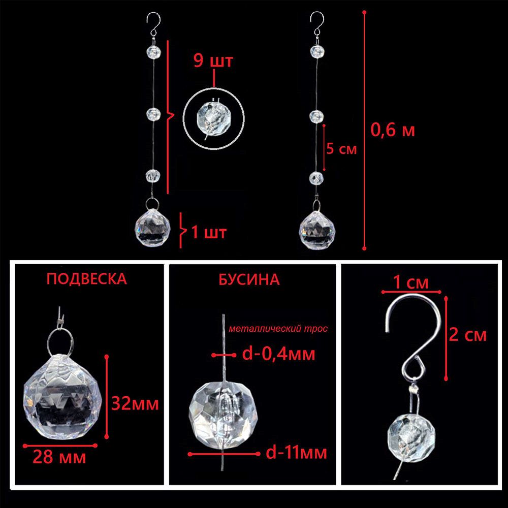 Набор струн с акриловыми бусинами №1, 10шт х 0,6м