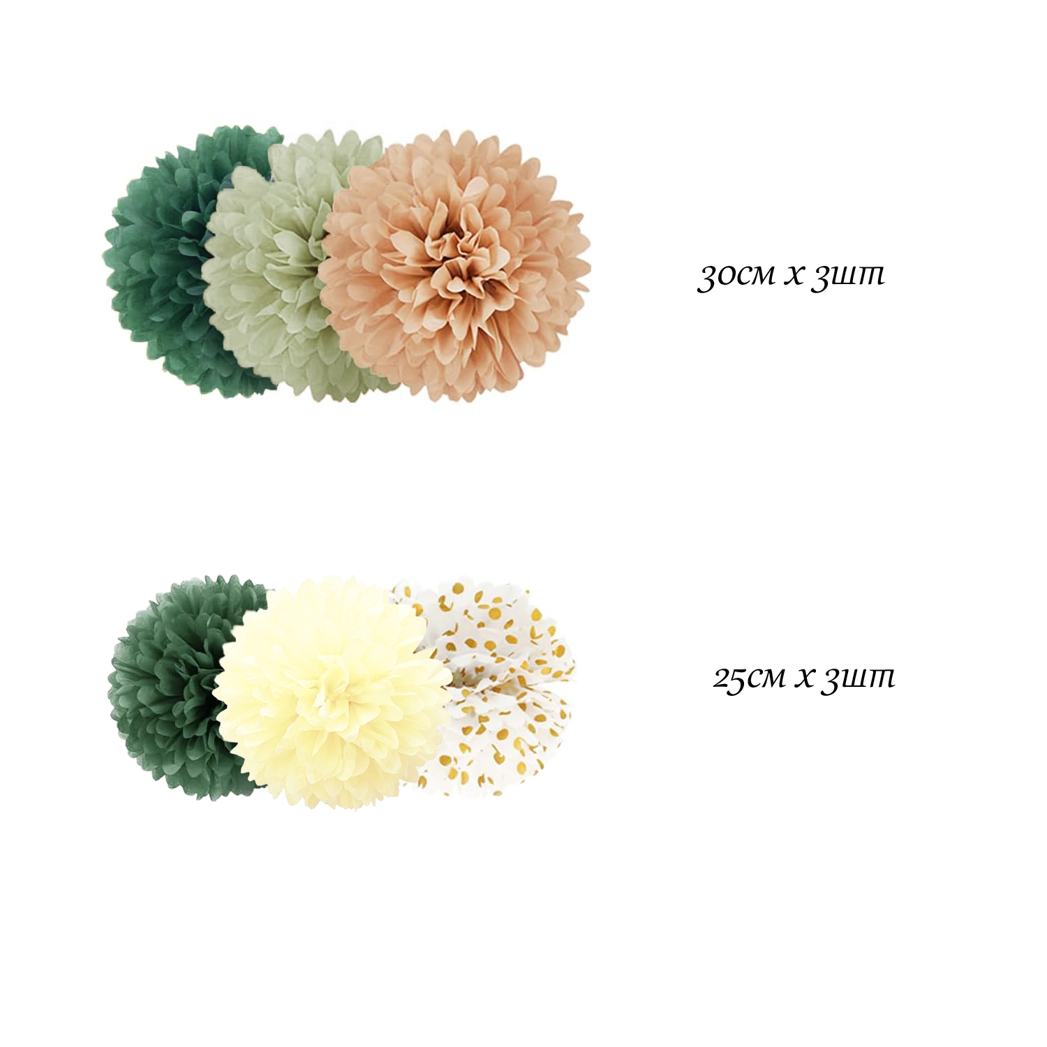 Помпоны из бумаги тишью, 6 шт: