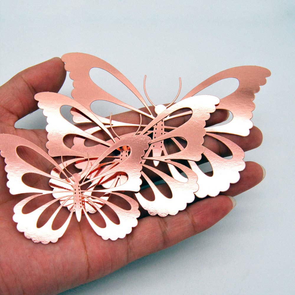 Наклейки Бабочки № 10 бумага металлик 12 шт розовое золото
