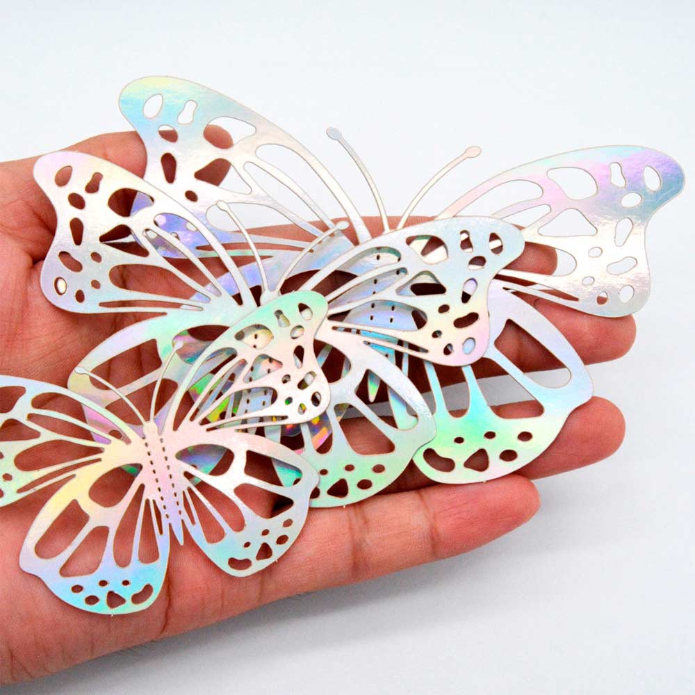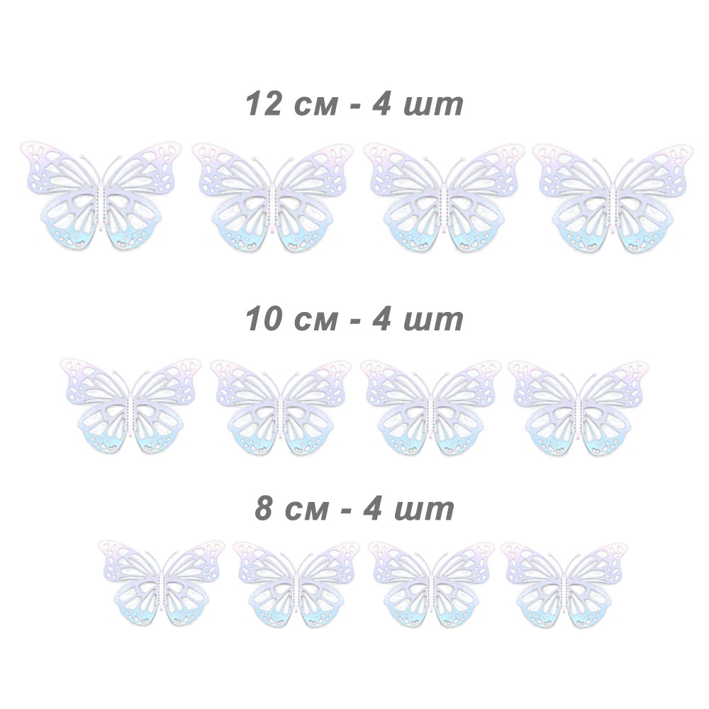 Наклейки Бабочки № 11 бумага металлик 12 шт серебро