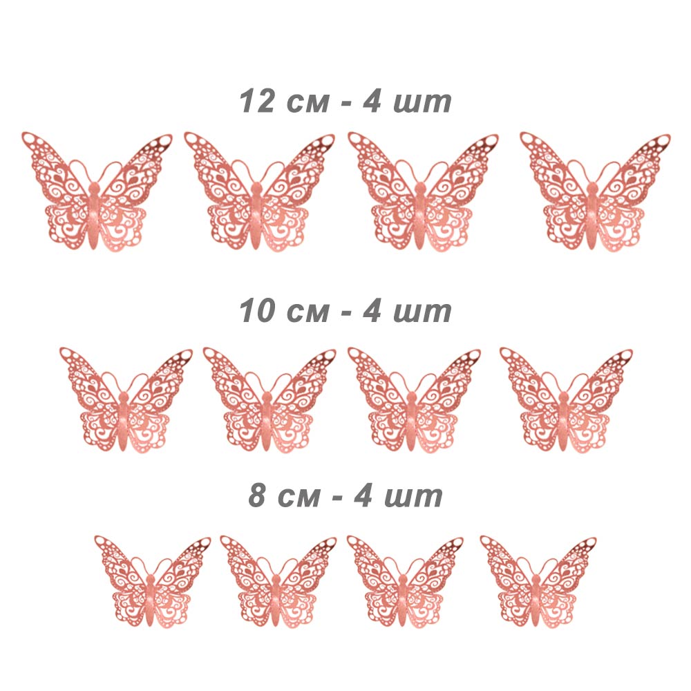 Наклейки Бабочки № 17 бумага металлик 12 шт розовое золото