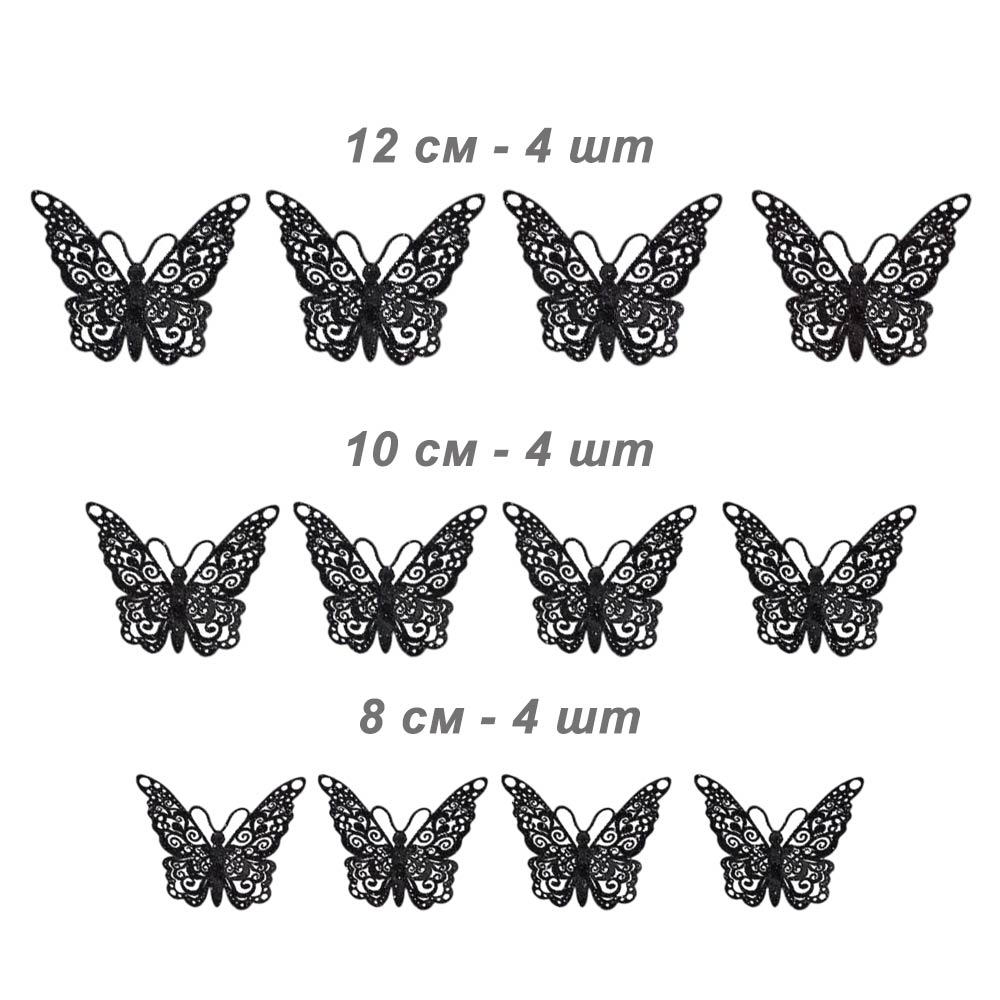 Наклейки Бабочки № 17 бумага перламутровая 12 шт черный