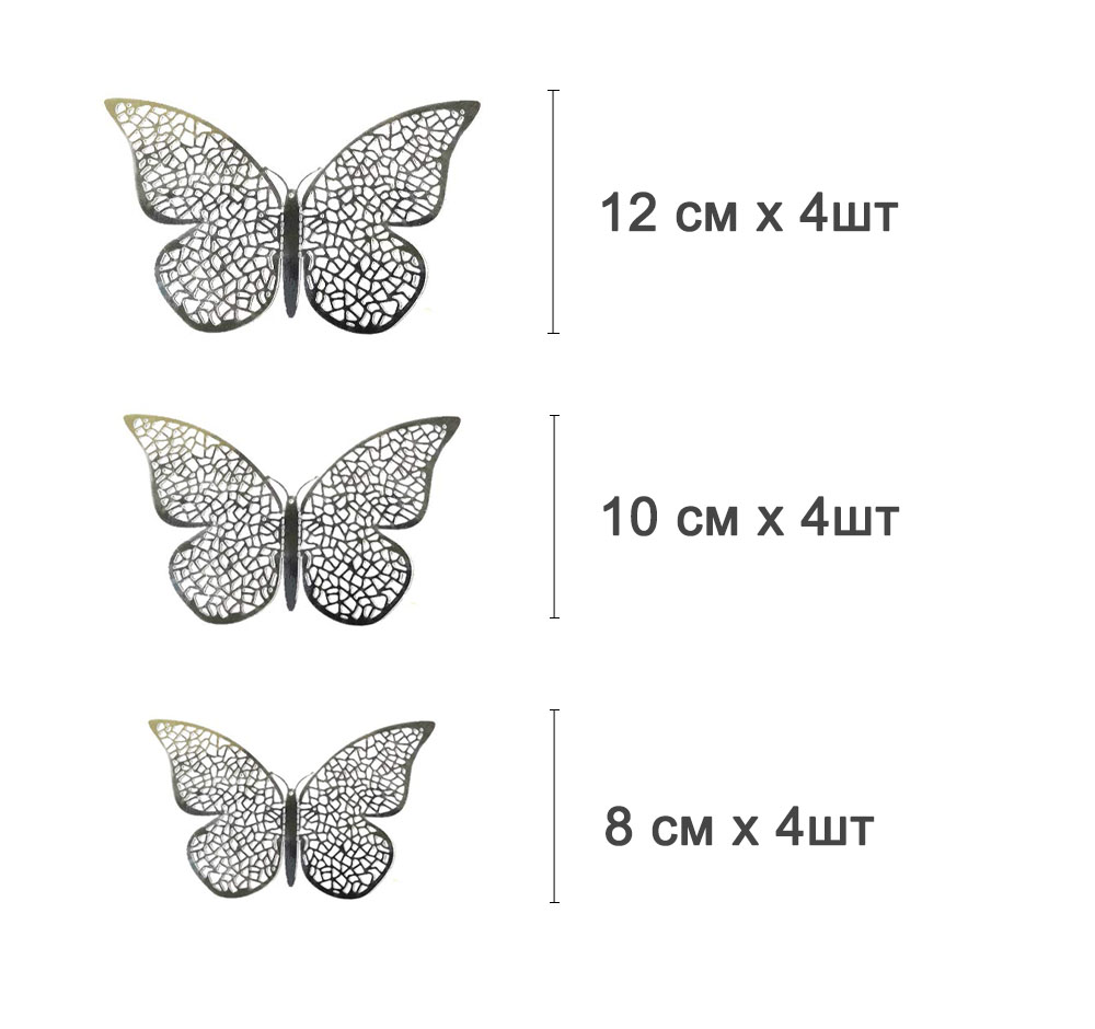 Наклейки Бабочки №1 12 шт бумага серебро