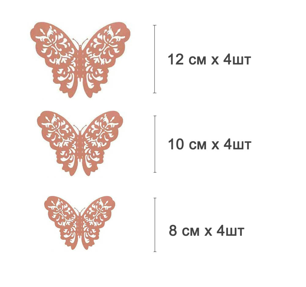 Наклейки Бабочки № 2 12 шт бумага розовое золото