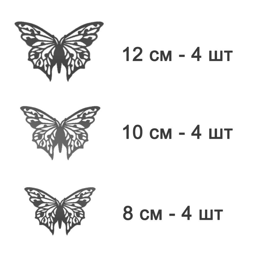 Наклейки Бабочки №5 12 шт бумага серый