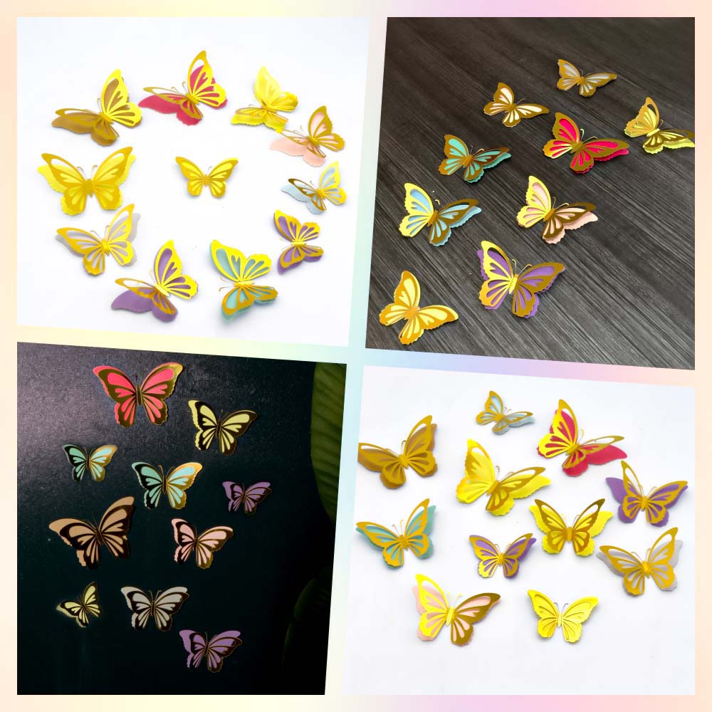 Наклейки Бабочки двойные перламутровые бумажные № 6 12 шт золото+бронза