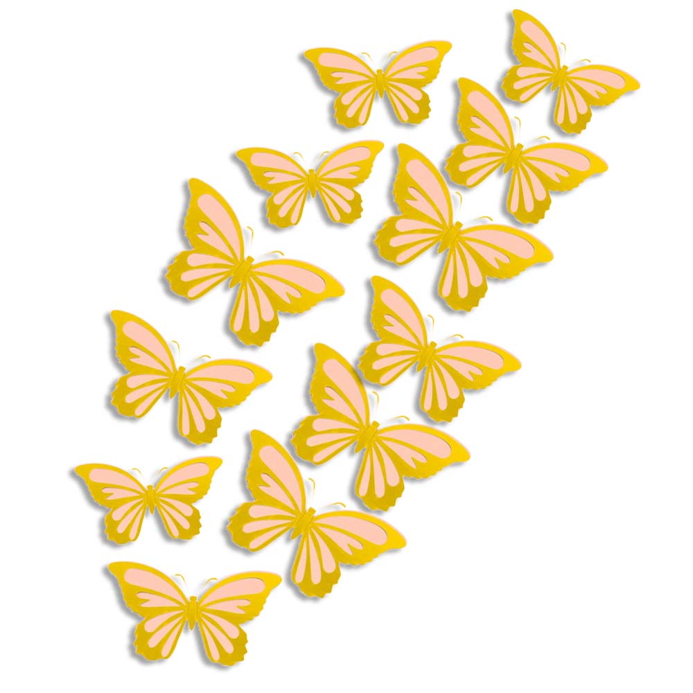 Наклейки Бабочки двойные перламутровые бумажные № 6 12 шт золото+персиковый