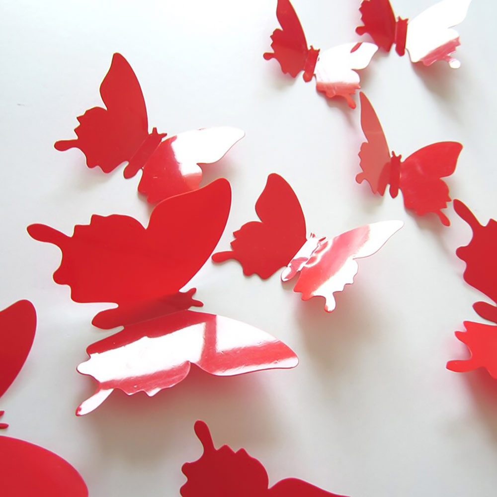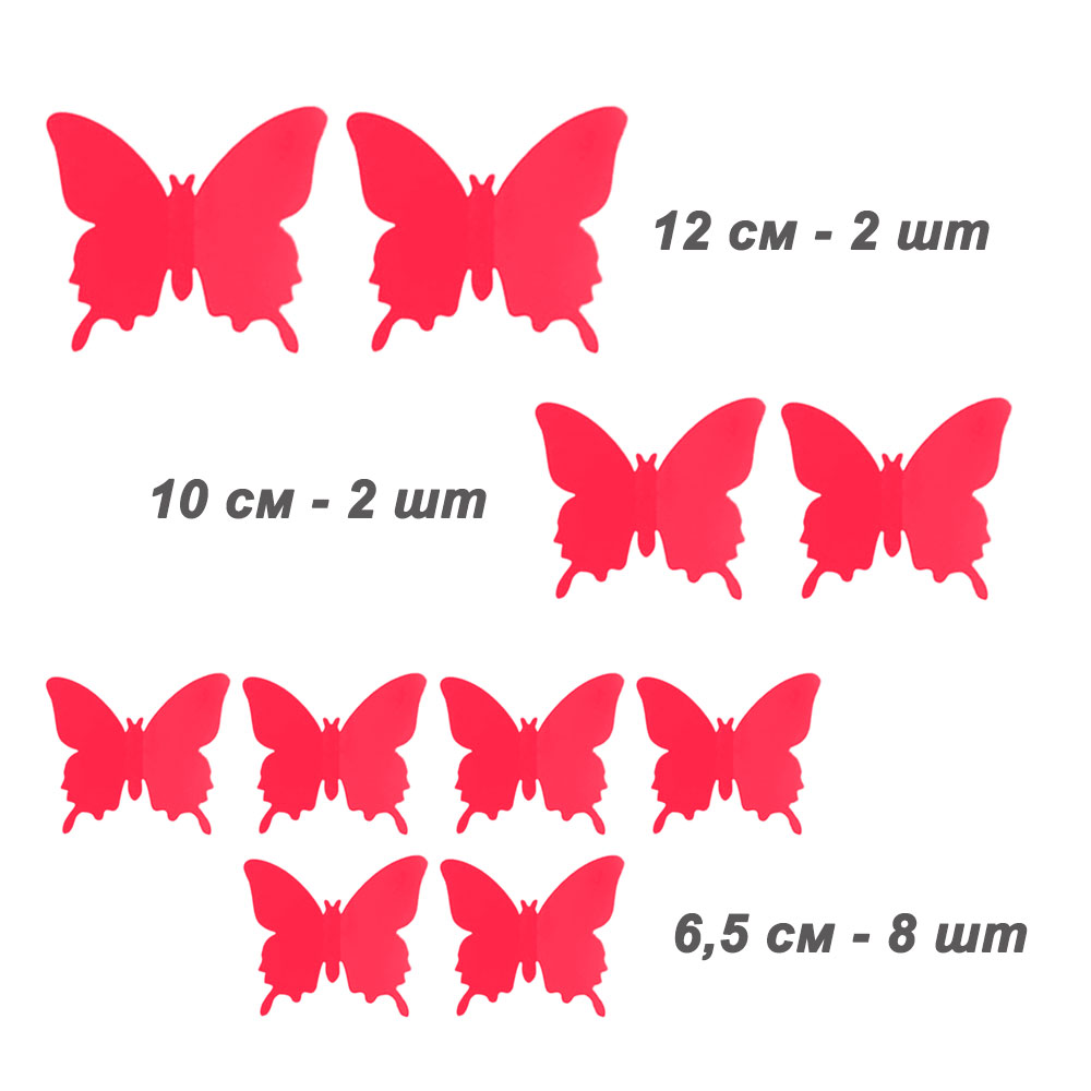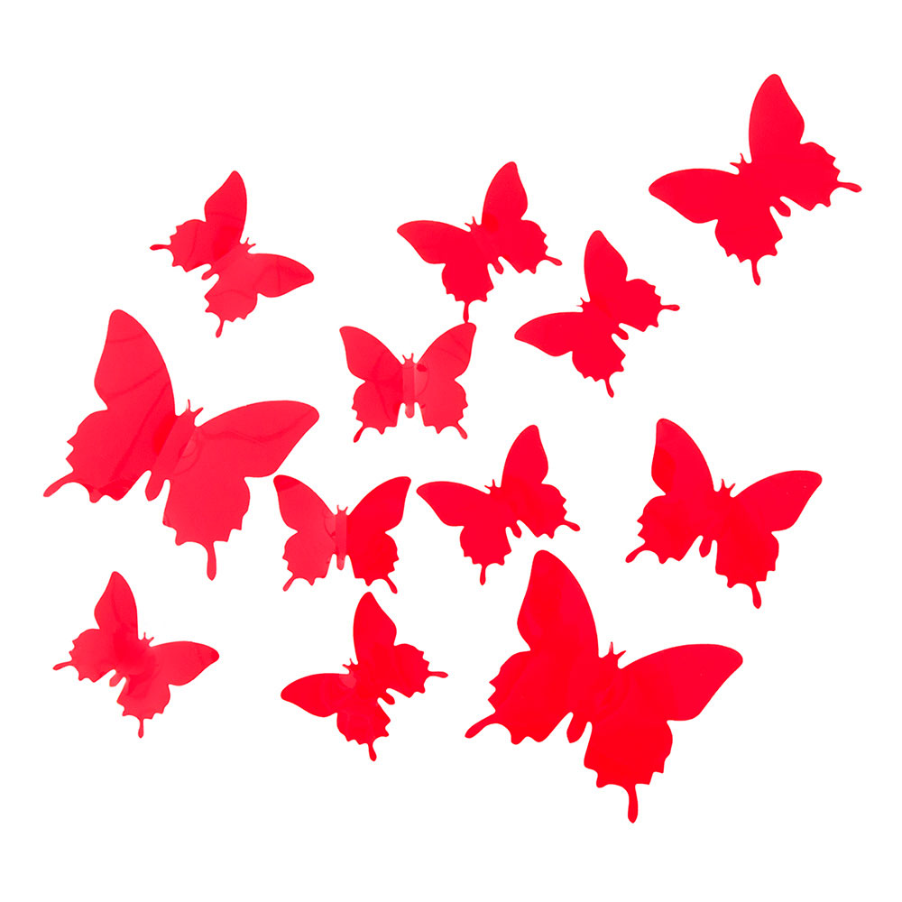 Наклейки Бабочки пластиковые № 8 12 шт матовый красный