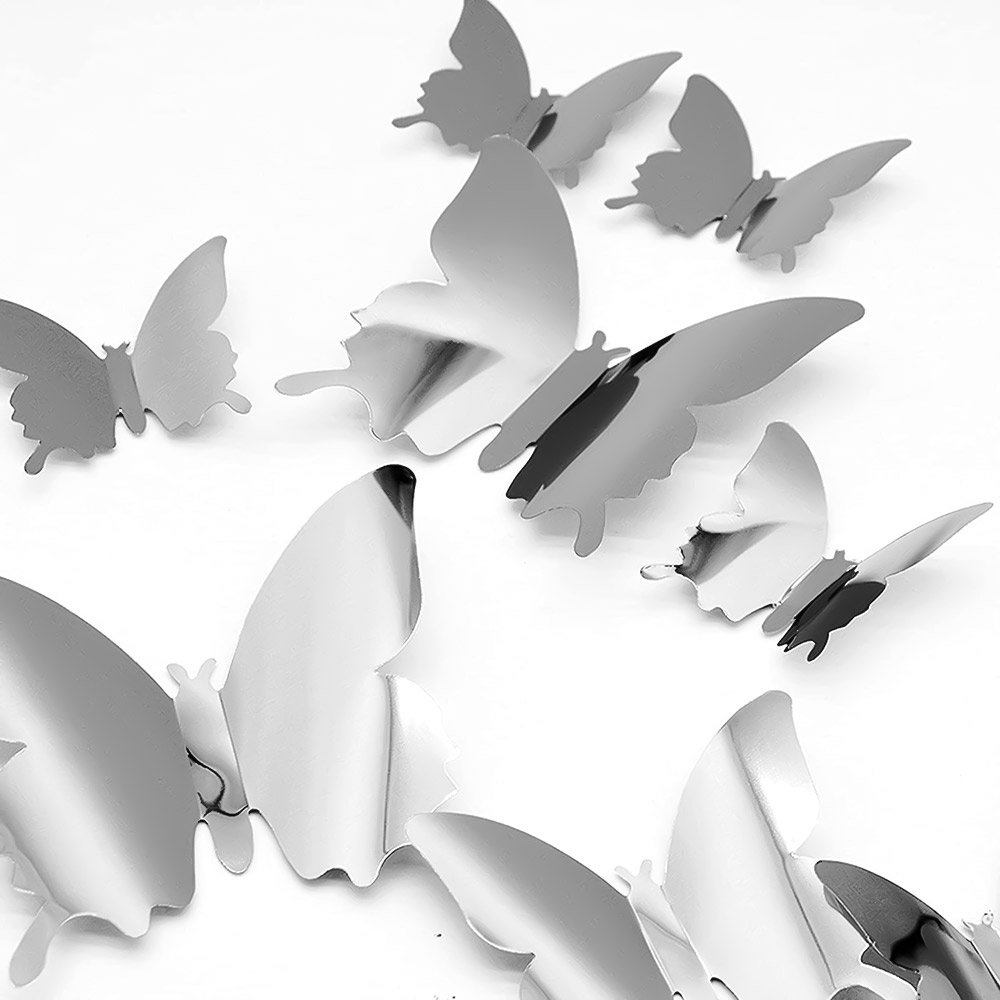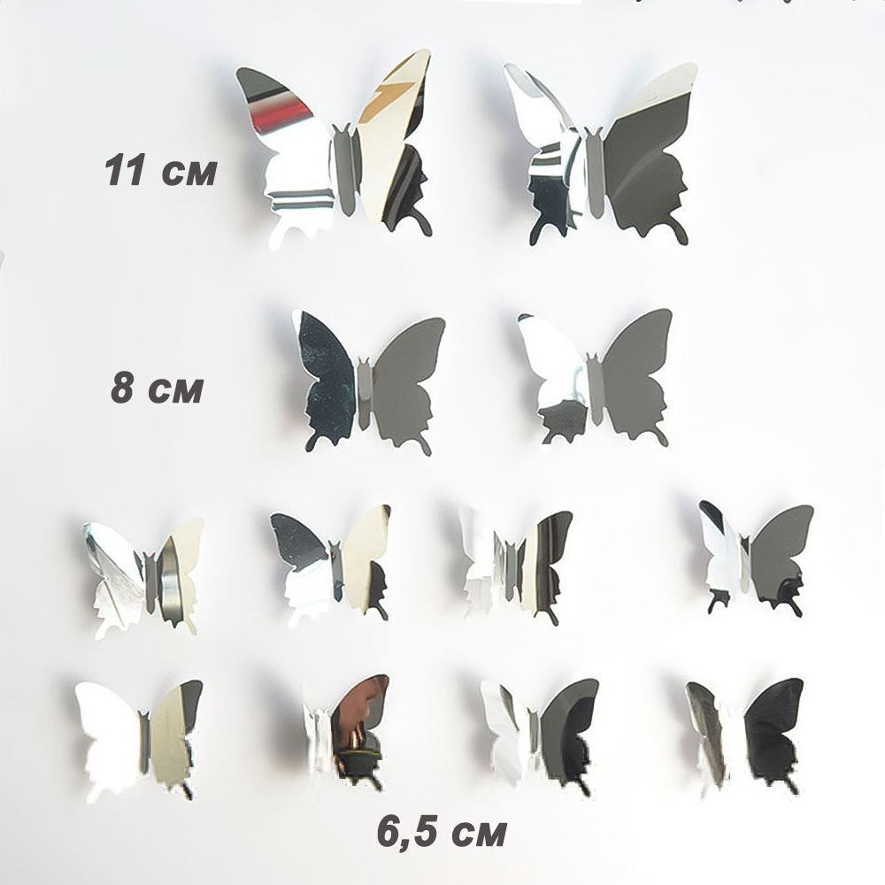 Наклейки Бабочки пластиковые № 9 12 шт металлик серебро