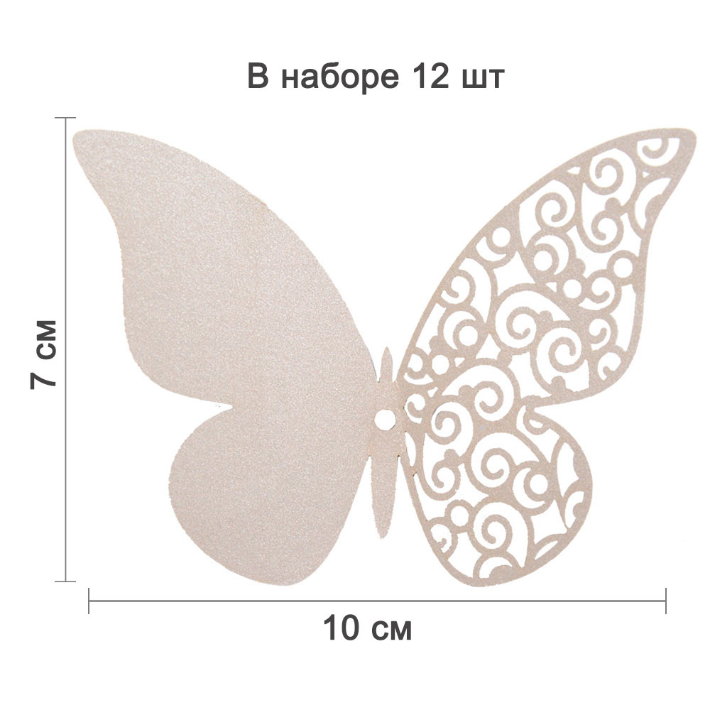 Бабочка из перламутровой бумаги, перфорация исполнена лазерной резкой, крепятся с помощью силиконовой липучки.