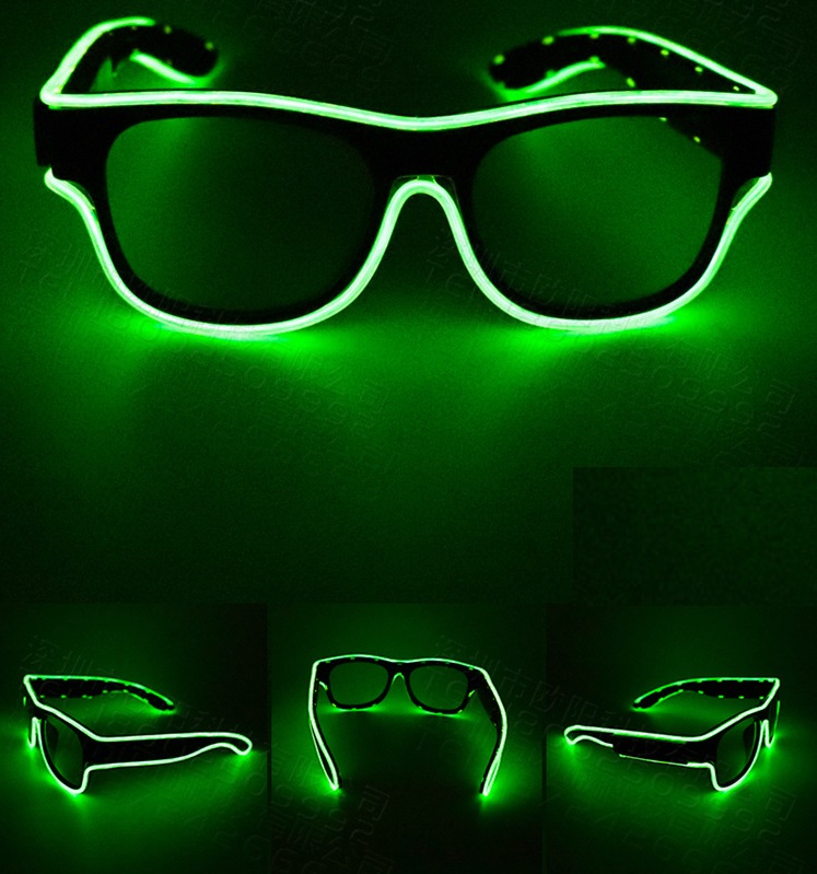 Светодиодные очки имеют прозрачную оправу, прозрачные линзы. Работают от встроенного аккумулятора, зарядка от USB.