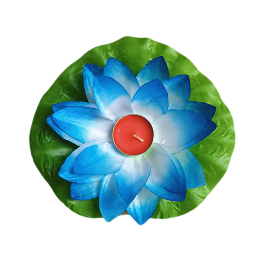 Плавающий фонарик из шелка Лотос 18х18 см синий