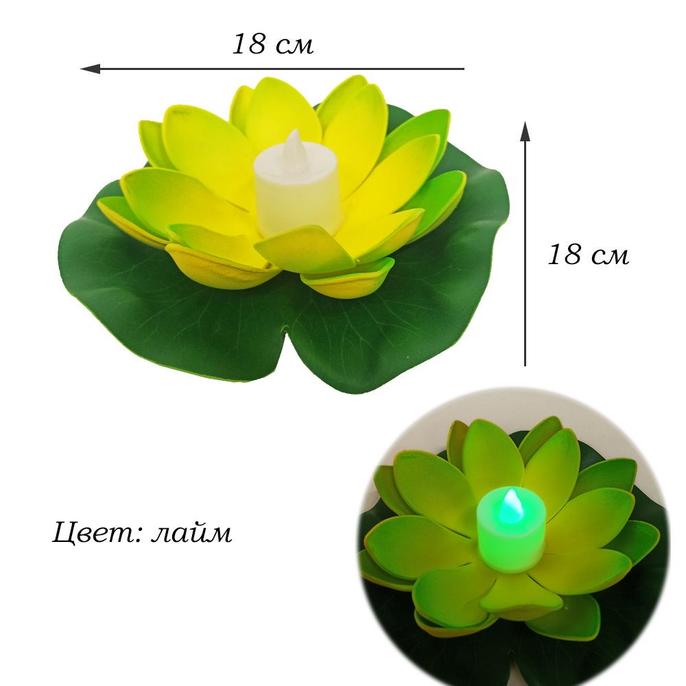 Плавающий фонарик Кувшинка со свечей 18х18 см, лайм