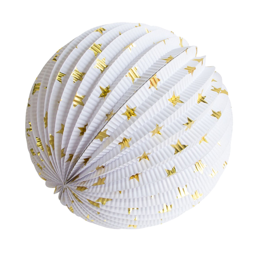 Подвесной фонарик "Аккордеон" 20 см звездочки, Золото