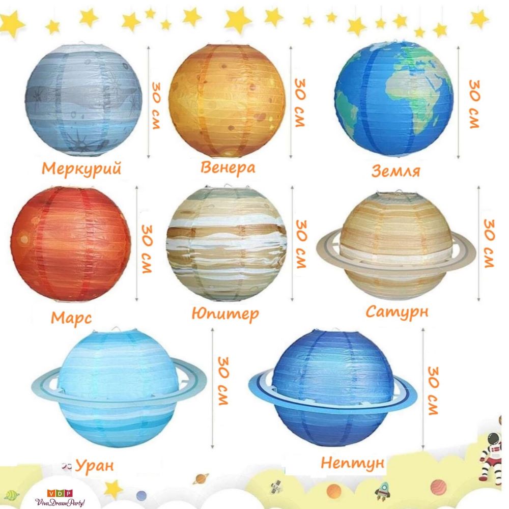 Набор подвесных фонариков "Парад планет" 8шт, 30 см