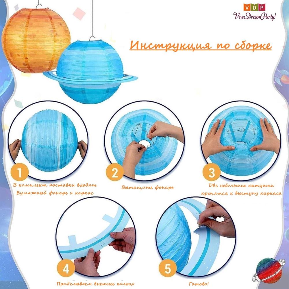 Подвесной фонарик планета "Сатурн"  диаметром 30 см.