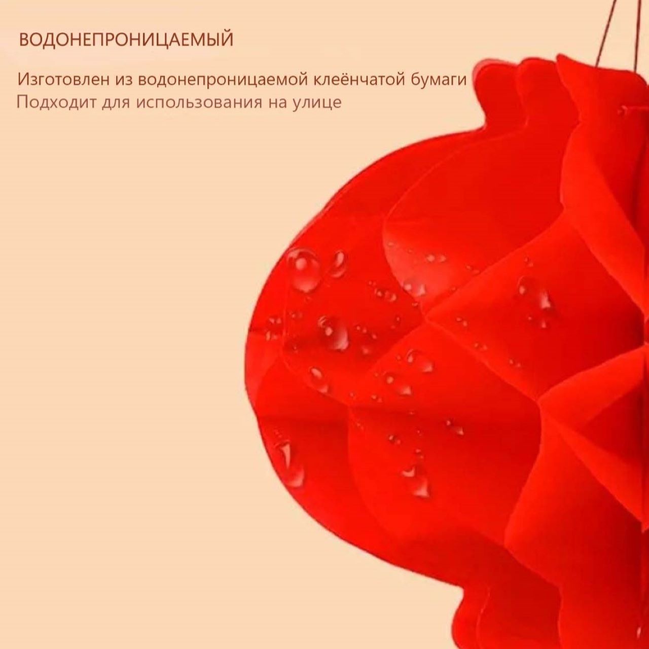 Материал: Красные бумажные фонарики изготовлены из высококачественной водонепроницаемой пластиковой бумаги. Они могут сохранять идеальную форму при длительном использовании.