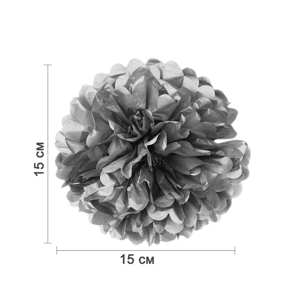 Серебряный бумажный помпон диаметром 15 см — стильное и лёгкое украшение для праздников, фотозон, витрин и интерьера. Отлично подойдёт для дней рождений, свадеб, вечеринок и тематических мероприятий.