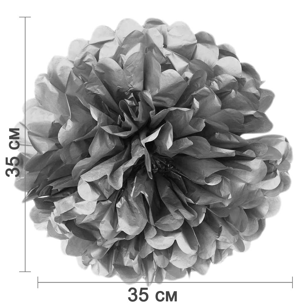 Помпон из бумаги 35 см серебро