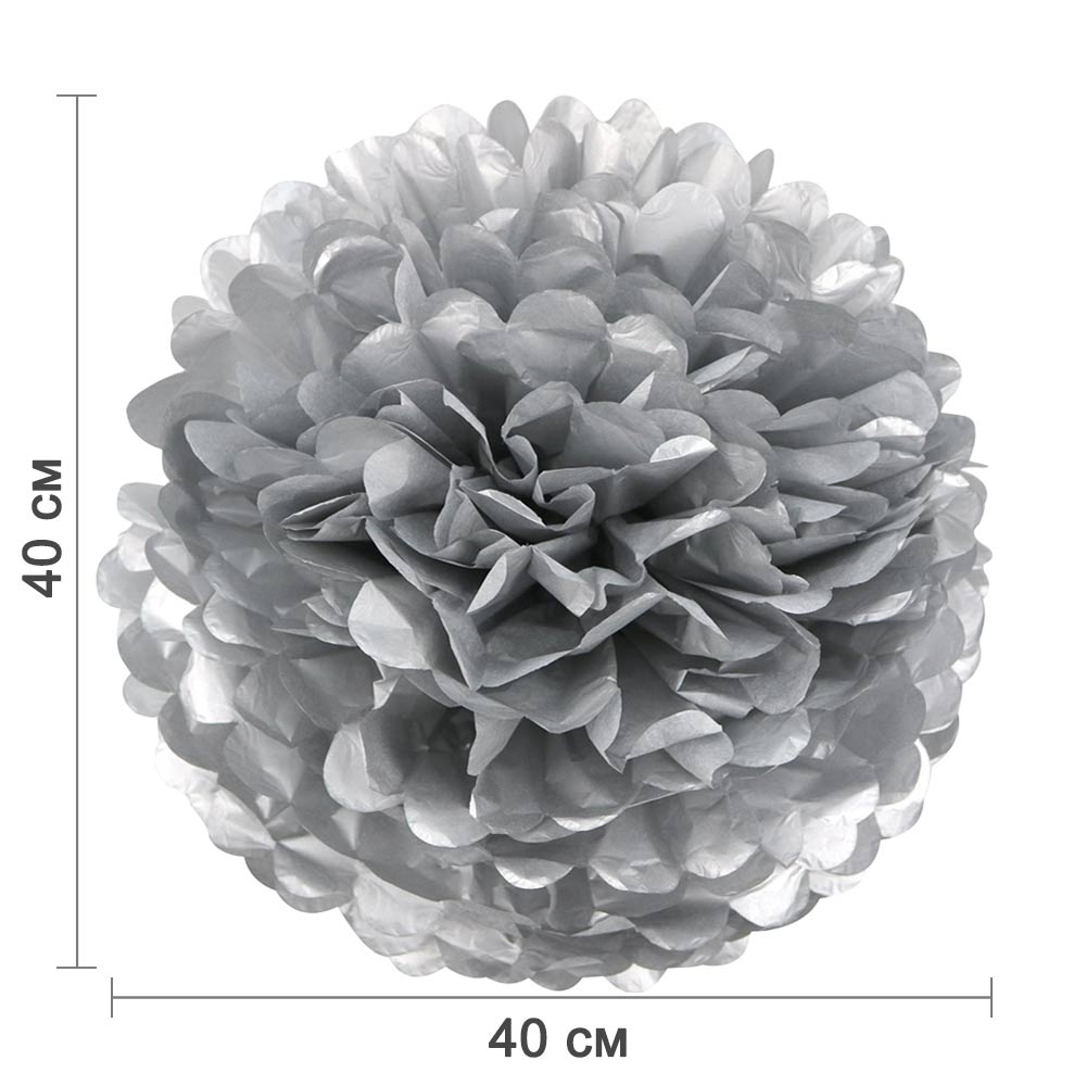 Серебряный бумажный помпон диаметром 40 см — стильное и лёгкое украшение для праздников, фотозон, витрин и интерьера. Отлично подойдёт для дней рождений, свадеб, вечеринок и тематических мероприятий.