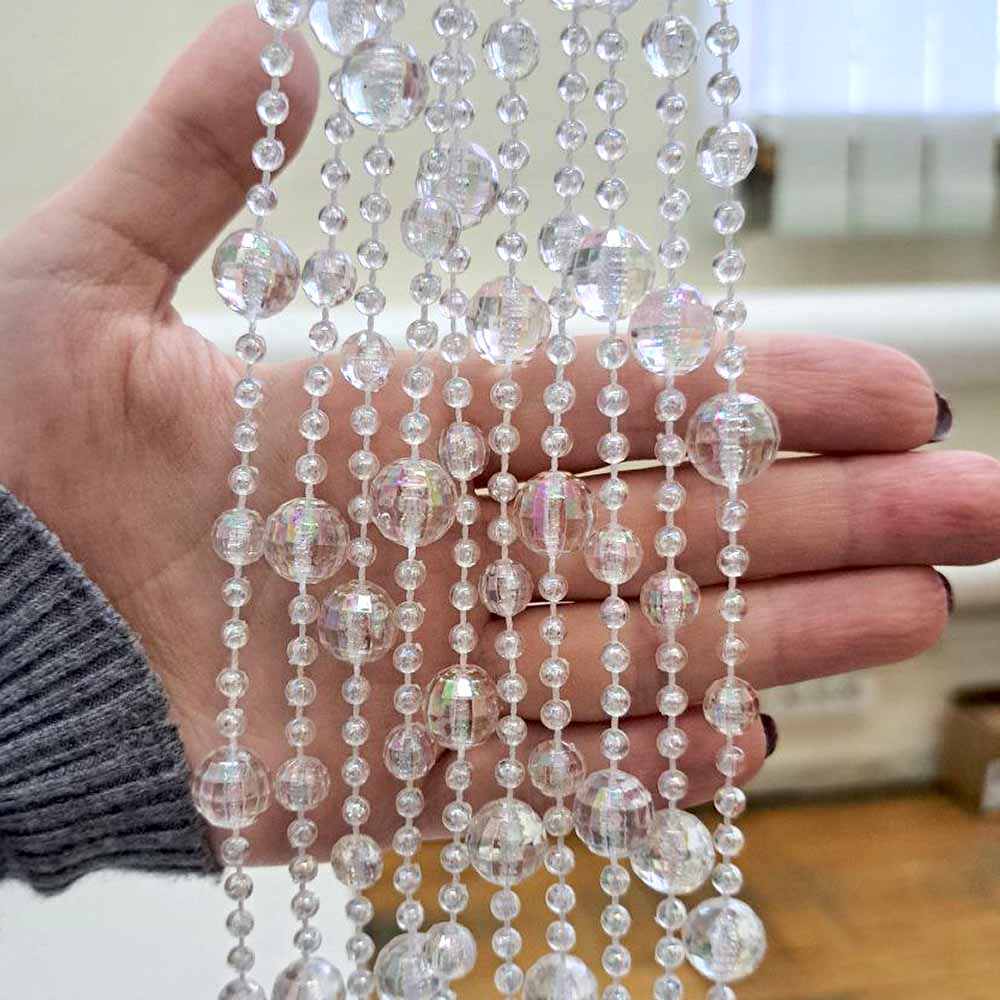 Празддничное оформление - можно собрать из бусин шторы или украсить люстры.