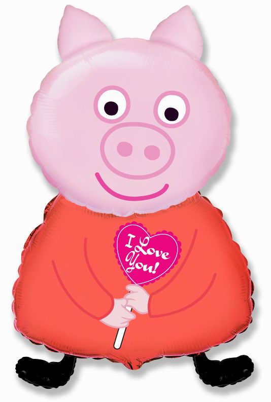 Шар 32х81 см Фигура, Поросенок с сердцем, Розовый