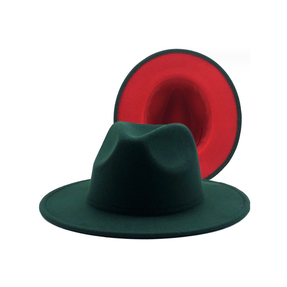 Шляпа Федора фетровая 2 цвета, темно-зеленый+красный