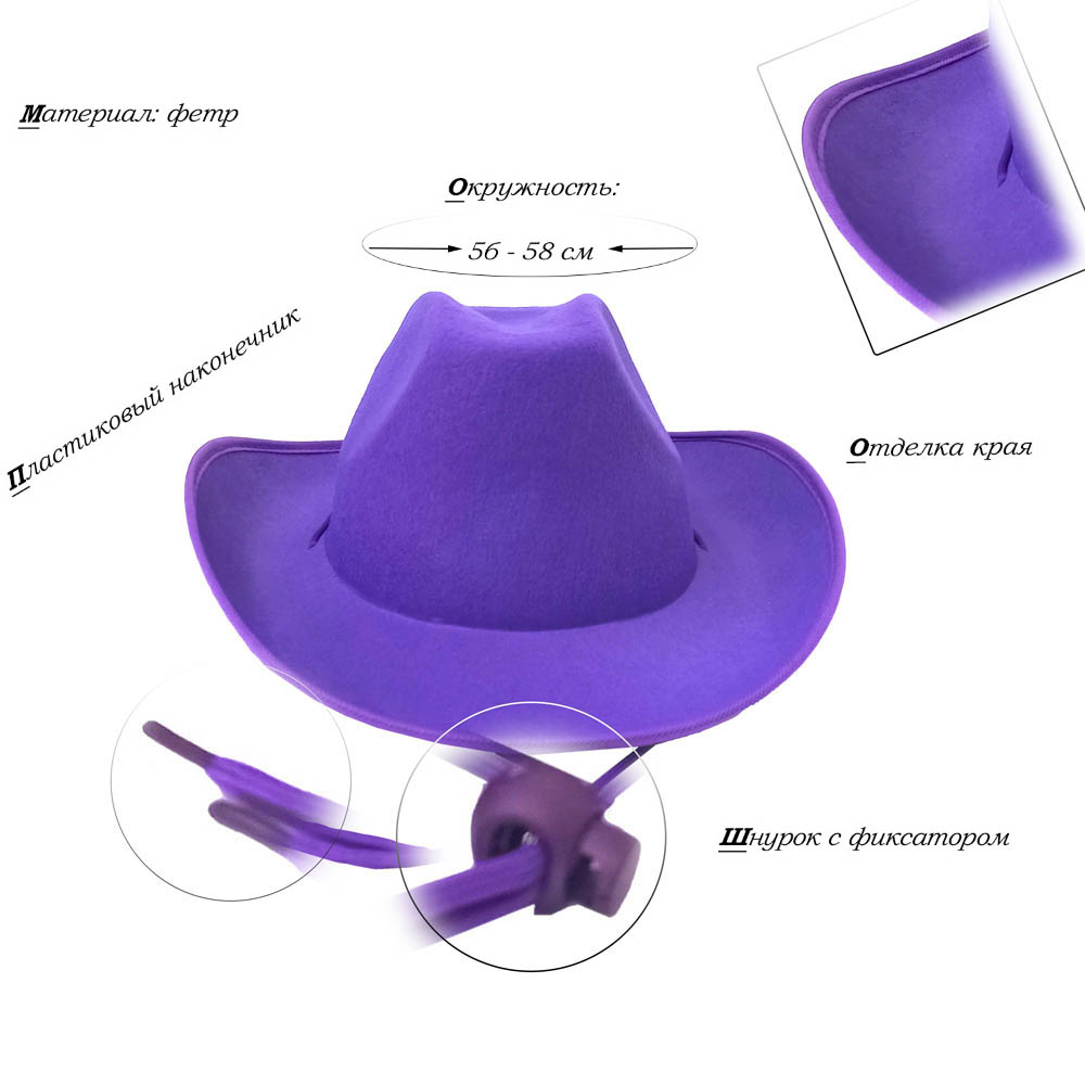 Шляпа ковбойская, сиреневый - 1 шт.