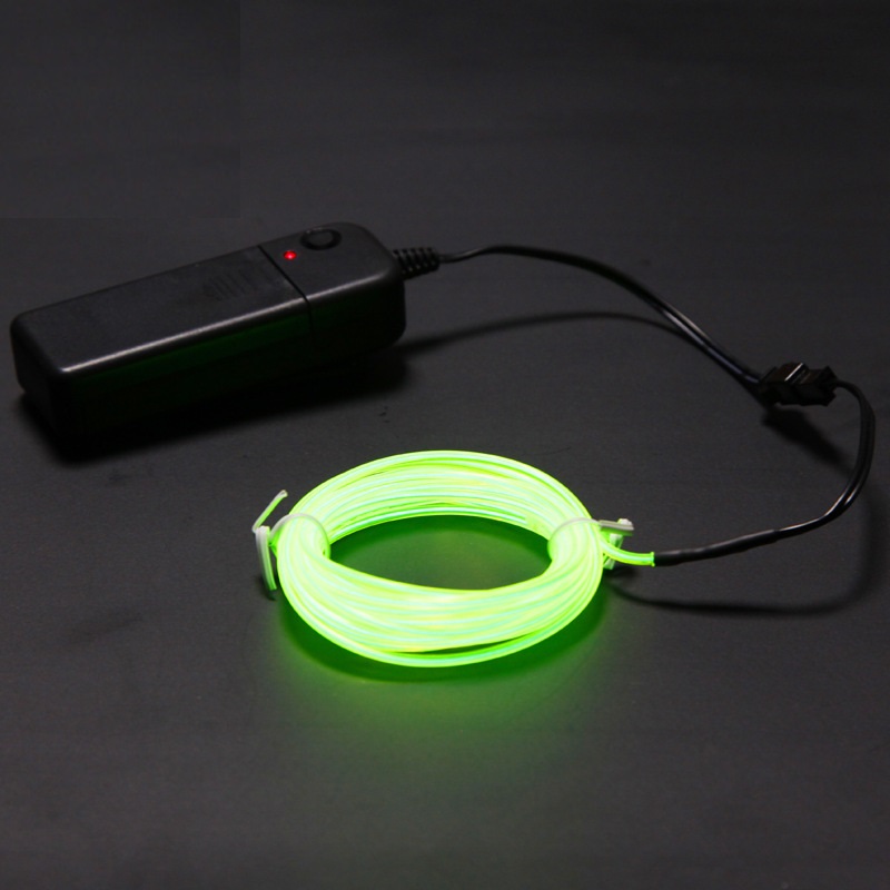 В комплекте с EL проводом, длинной 4 метра,  идет бокс с питанием от батареек, что позволяет его применять где угодно, даже на улице.  Работает от 2-х батареек 2АА (батареек в комплекте нет).