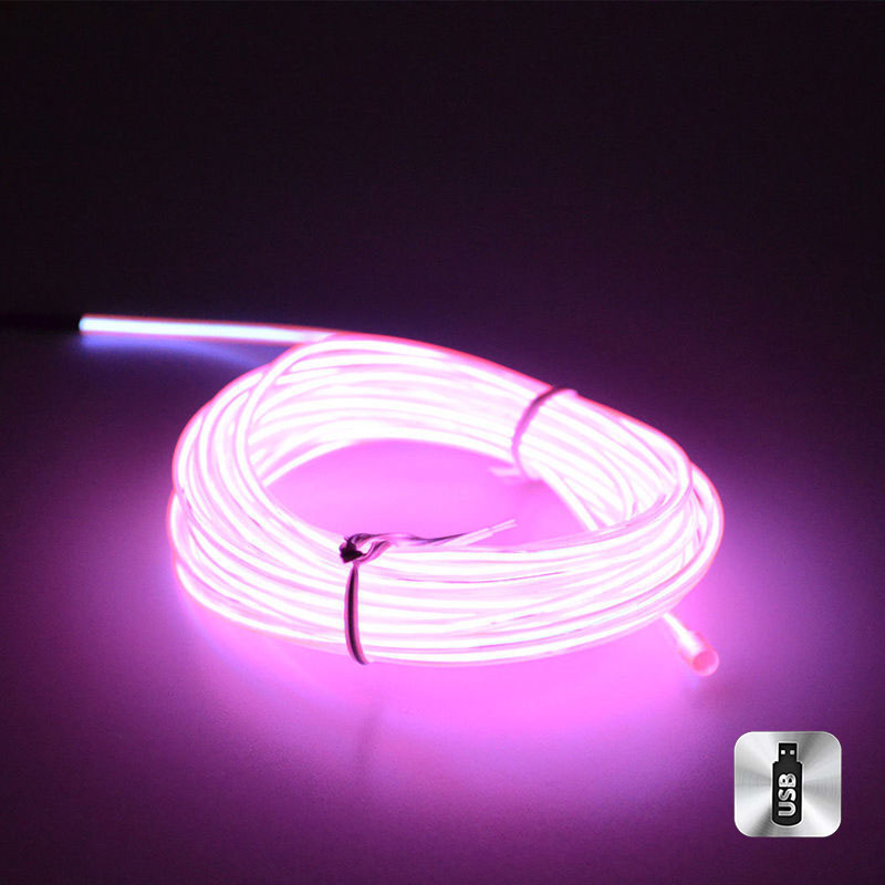 Шнур неоновый светящийся от USB 4 м, розовый