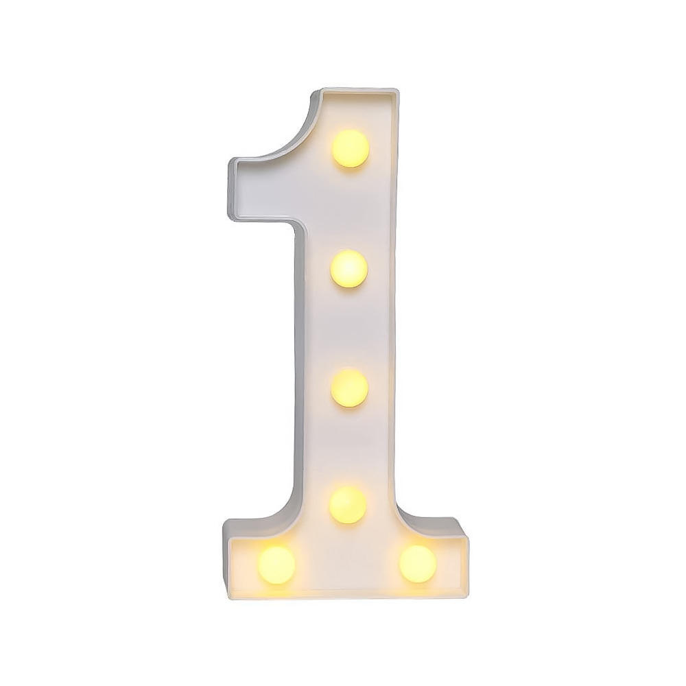 Цифра 1 светодиодная 21 см, от батареек , теплый белый