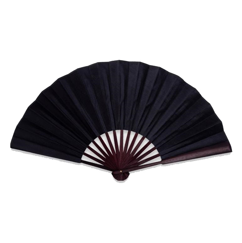 Двухсторонний складной веер для танца. Выполнен из бамбука и плотной ткани.