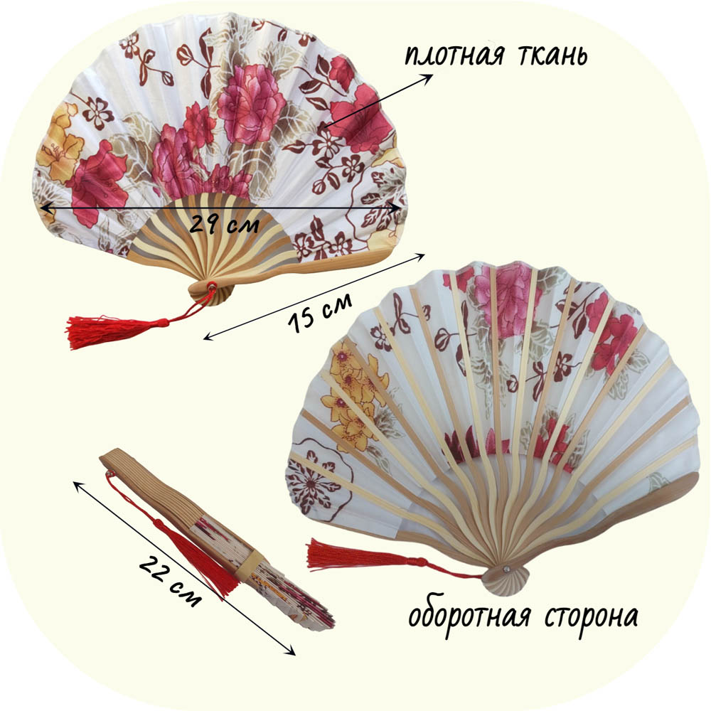 Веера тканевые с цветочным узором круглые 29х15см