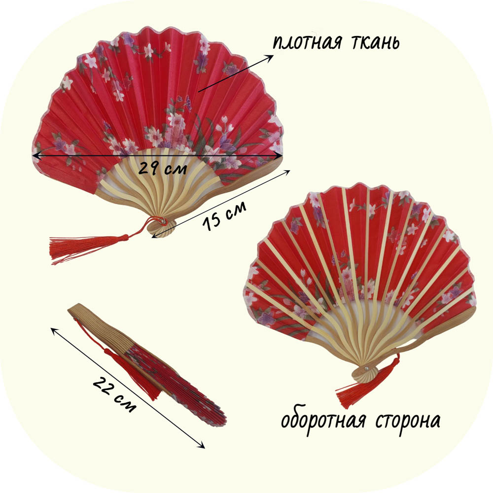 Веера тканевые с цветочным узором круглые 29х15см