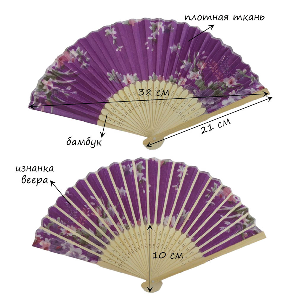 Веер с цветочным узором 38х21 см, №5