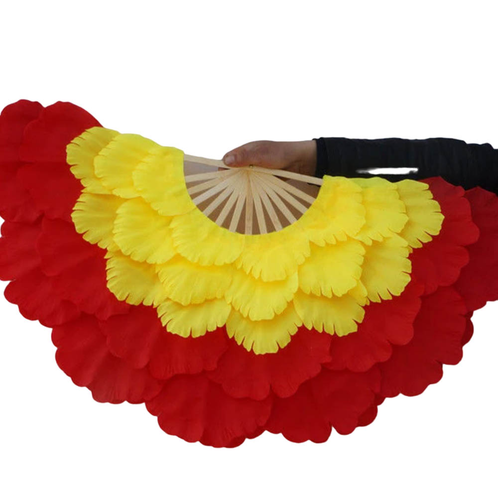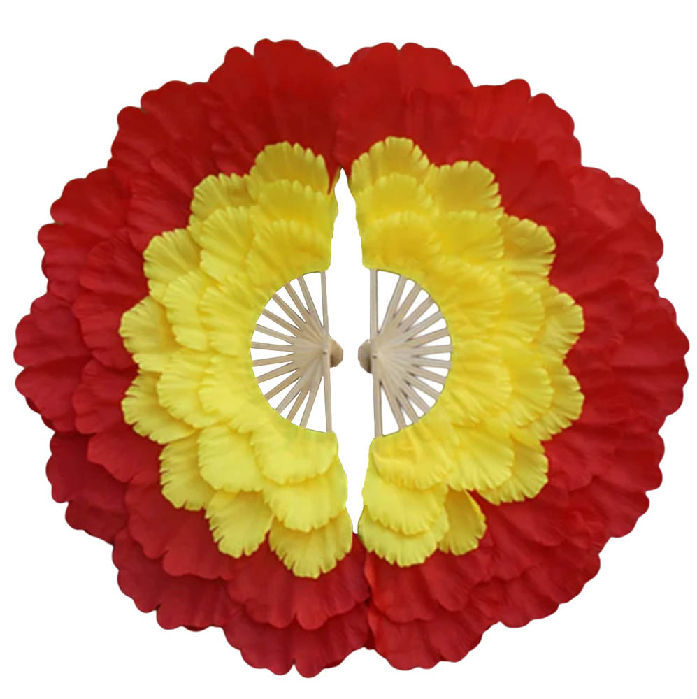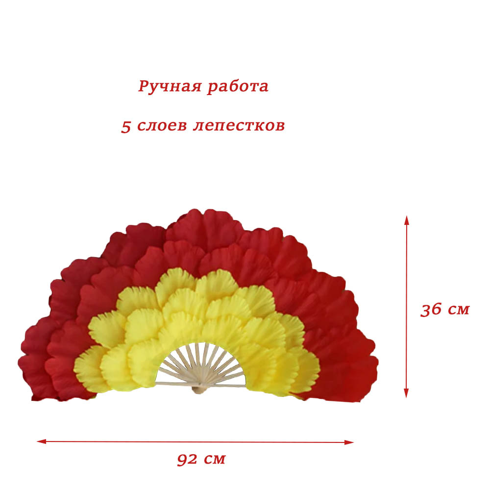 Веера пионы для танцев 92х36см 5-ти слойные 2 шт., красный+желтый