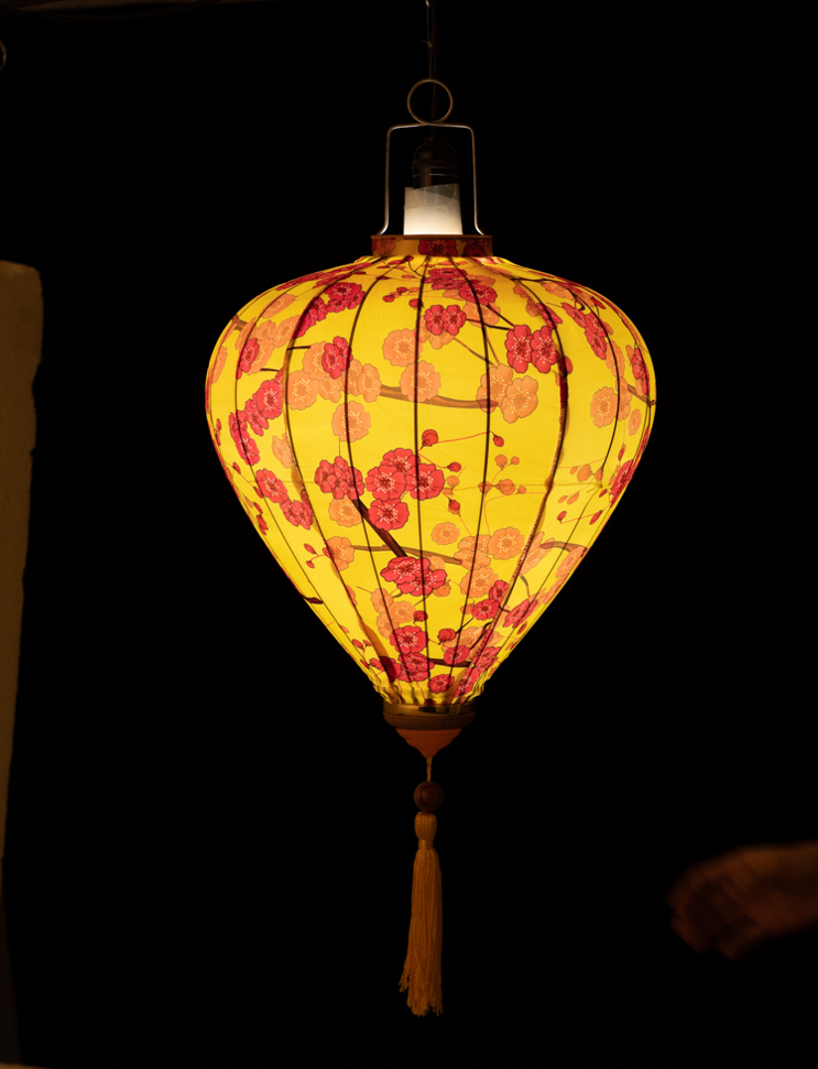 Это традиционные подвесные фонарики ручной работы, изготовленные из шелкового материала с элегантным цветочным узором, которые делают его изысканным и красивым.